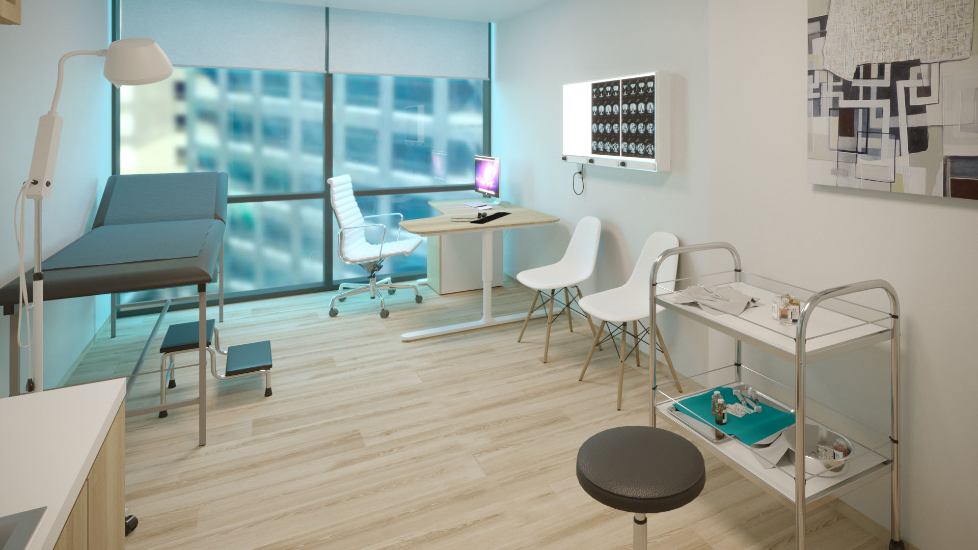 The consultation rooms are located next to the windows. The walls of those room are tastefully decorated. Both the walls and the windows are tools to serve as minor distraction to the visitor’s discomfort.